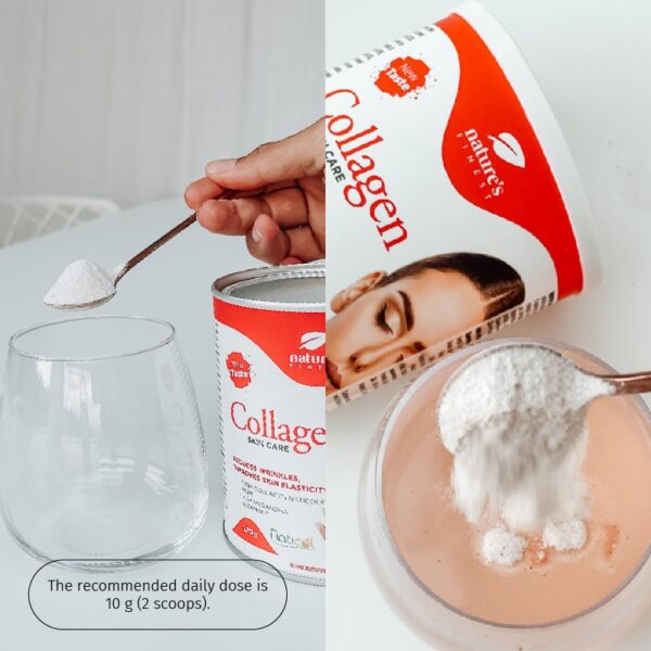 The recommended daily dose is 10g (2 scoops). Mix in water and leave for 2 minutes until the collagen dissolves completely. With 10g of powder, you consume 5g of Naticol collagen peptides.