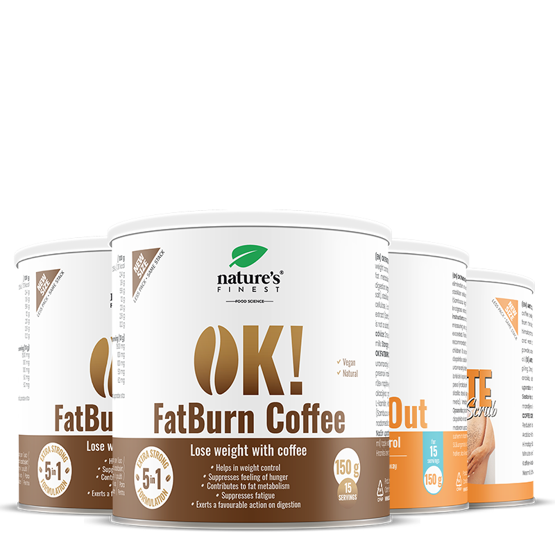 OK!FatBurn Coffee: Stir 10 g (1 tablespoon) of OK!FatBurn Coffee mixture into a cup (150 ml) of warm water or (plant) milk.