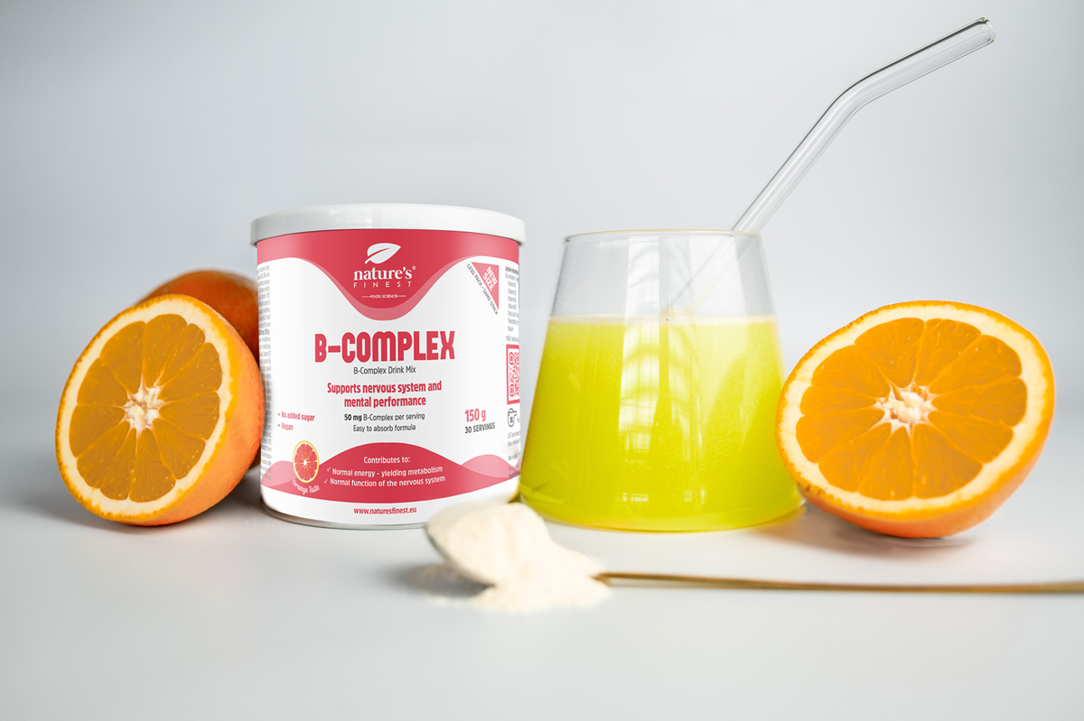 Our B-complex features natural orange flavour (5%), creating a refreshing citrus drink that makes daily B vitamin intake enjoyable.