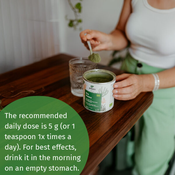 The recommended daily dose is 5 g (or 1 teaspoon 1x times a day). For best effects, drink it in the morning on an empty stomach.