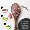 Ingredients: Inulin powder, sweetener: erythritol, ID-alG ™ ((extract of seaweed (Ascophyllum nodosum) (50%), grape powder extract (Vitis vinifera, seed) (50%)), raspberry flavour, guarana (Paullinia cupana Kunth) extract, garcinia cambogia (Garcinia gummi-gutta) extract, gymnema sylvestre (Gymnema sylvestre) extract, beetroot concentrate (maltodextrin, beetroot powder (Beta vulgaris)). Contains naturally occurring SULFITES.