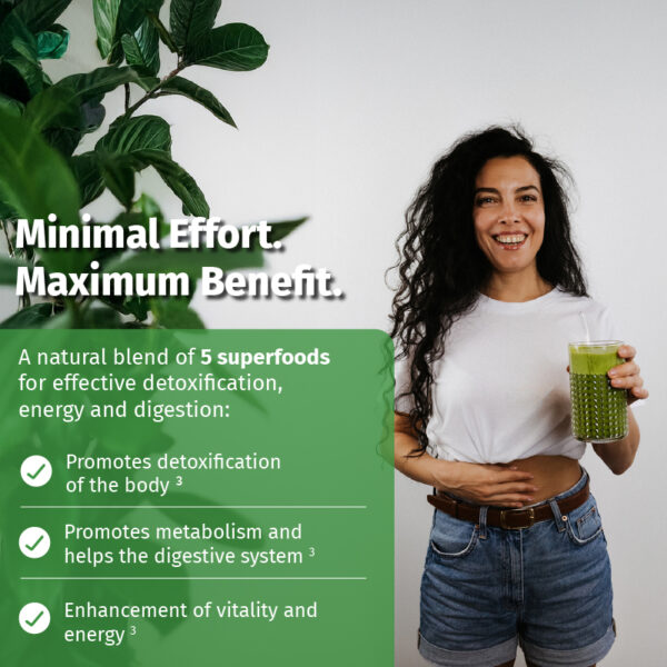 A natural blend of 5 superfoods for effective detoxification, energy and digestion: