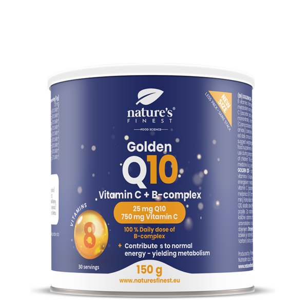Our Golden Q10 provides Coenzyme Q10, a natural compound found in the cells of the body, enhanced with vitamin C for collagen formation and cellular protection from oxidative stress, plus B-complex vitamins.