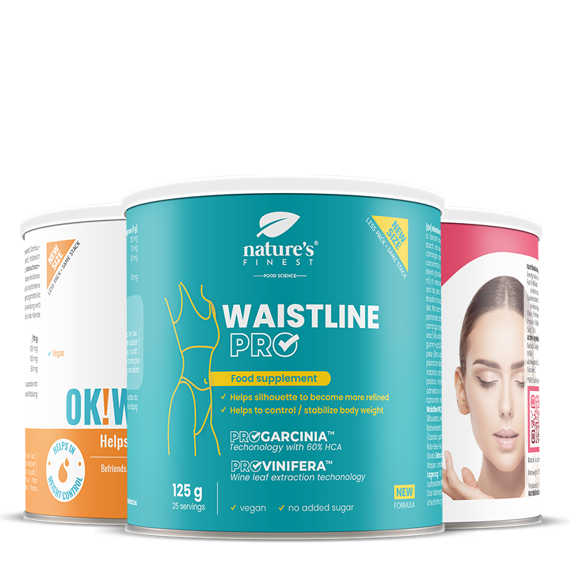 • Waistline PRO: ProVinifera™ extract and ProGarcinia™ extract (60% HCA) – premium technology with a high proportion of hydroxycitric acid that reduces fat storage in the body