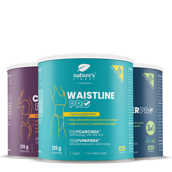 • Waistline PRO: ProVinifera™ extract and ProGarcinia™ extract (60% HCA) – premium technology with a high proportion of hydroxycitric acid that reduces fat storage in the body