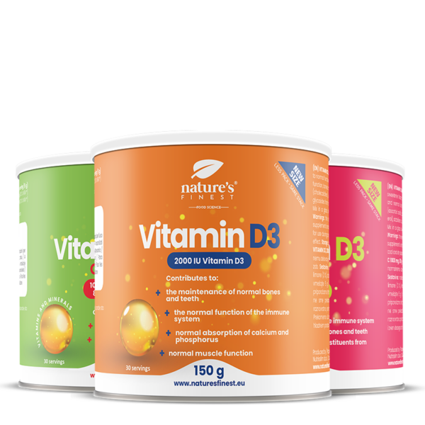 Vitamin D3 contributes to the normal function of the immune system, normal absorption of calcium and phosphorus, contributes to muscle function and has a role in the process of cell division .Vitamin C contributes to the protection of cells from oxidative stress, supports the normal functioning of the nervous and immune systems, and helps reduce tiredness and fatigue. It also contributes to normal collagen formation.